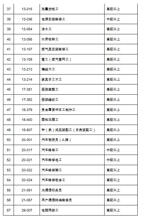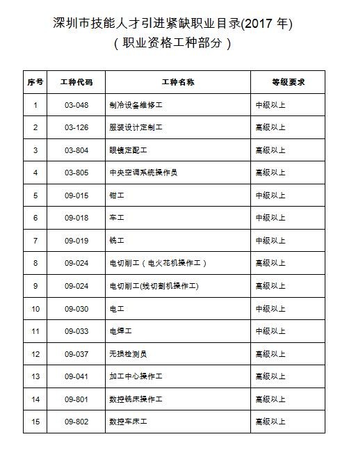 ②職業(yè)資格證書的工種符合《深圳市技能人才引進緊缺職業(yè)目錄(2017)》。(見下表)