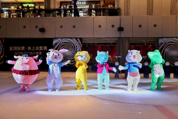在這次公益行動中,益田旅游商業(yè)聯動包括深圳益田假日廣場在內的全國7大在營商業(yè)項目,聯手同行,為愛助力!這次行動也同期設計了代表7大商業(yè)項目的公益卡通形象,分別是甜甜、NITO、PINO、BOOM、MOKA、OLLI、CATHY,在光影秀結束后,7大IP形象在冰面上悉數亮相,“萌”動全場。