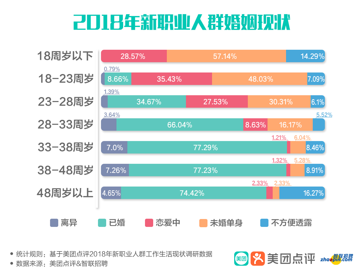 在新職業(yè)人群中,婚姻狀態(tài)符合社會趨勢,調酒師單身率最高