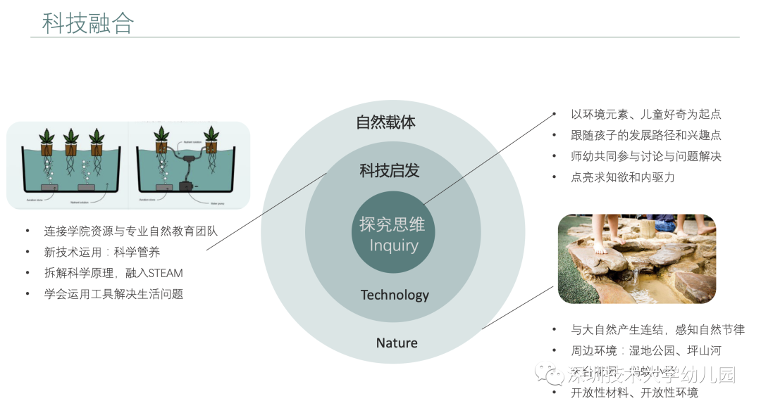 園舍內,聯(lián)動大學學院資源和專業(yè)自然教育團隊打造自然教育場所,使得科技與自然在幼兒環(huán)境中有機結合。自然在前,技術運用在后,孩子將用探究的眼光發(fā)現(xiàn)如何運用技術解決生活問題。