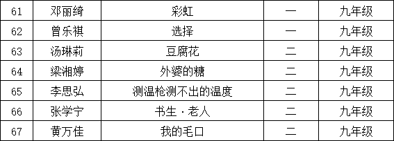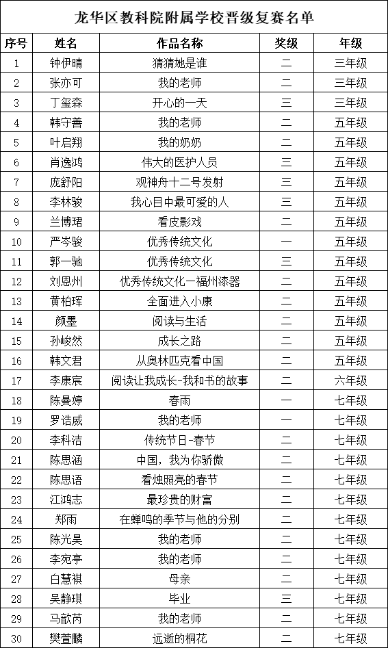 自2021年1月,活動(dòng)征稿啟動(dòng)以來,獲得了深圳市廣大中小學(xué)生、教師、文學(xué)愛好者的熱烈響應(yīng)積極參與,吸引了深圳百余所學(xué)校的上萬人關(guān)注報(bào)名。現(xiàn)公布深圳市龍華區(qū)教科院附屬學(xué)校晉級(jí)復(fù)賽名單如下: