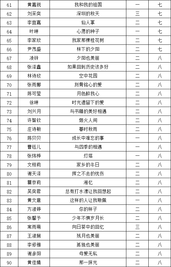自2021年1月,活動征稿啟動以來,獲得了深圳市廣大中小學(xué)生、教師、文學(xué)愛好者的熱烈響應(yīng)積極參與,吸引了深圳百余所學(xué)校的上萬人關(guān)注報(bào)名。現(xiàn)公布南二外(集團(tuán))赤灣學(xué)校晉級復(fù)賽名單如下: