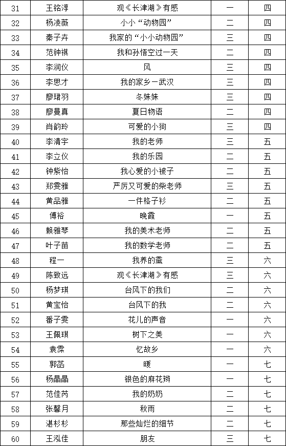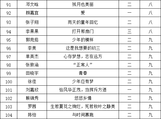 晉級文友無需再次準(zhǔn)備作品,每一屆一位學(xué)生一篇作品投稿參賽,以實(shí)際創(chuàng)作作品品質(zhì)為審評基礎(chǔ)依據(jù):海選初評晉級復(fù)評入選比例控制在10%以內(nèi),晉級復(fù)賽的作品作者無需準(zhǔn)備第二次創(chuàng)作,在同一年級統(tǒng)一復(fù)賽池內(nèi)競選審評出更出色作品進(jìn)入總決賽。代表當(dāng)年度文學(xué)創(chuàng)作水平的發(fā)展見證。