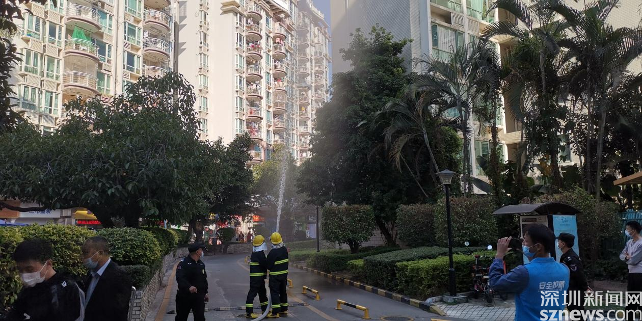 演練情景設(shè)定為巡查人員發(fā)現(xiàn)火情,第一時(shí)間向社區(qū)安全相關(guān)負(fù)責(zé)人匯報(bào),安保處立刻報(bào)警并啟動(dòng)消防應(yīng)急預(yù)案。隨后火警警報(bào)驟響,樓道內(nèi)冒出濃煙,疏散演練正式開(kāi)始。居民們?cè)诠ぷ魅藛T的指揮下,用口罩、衣服等捂口鼻,屈膝彎腰沿著既定的疏散路線,迅速向安全區(qū)域撤離。隨后社區(qū)消防員趕赴現(xiàn)場(chǎng),使用高壓水槍撲滅火災(zāi),解除警報(bào)。演練結(jié)束后,社區(qū)還組織居民參加安全體驗(yàn)活動(dòng)。