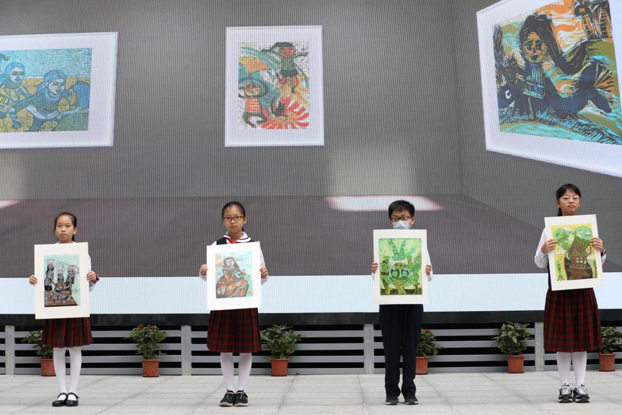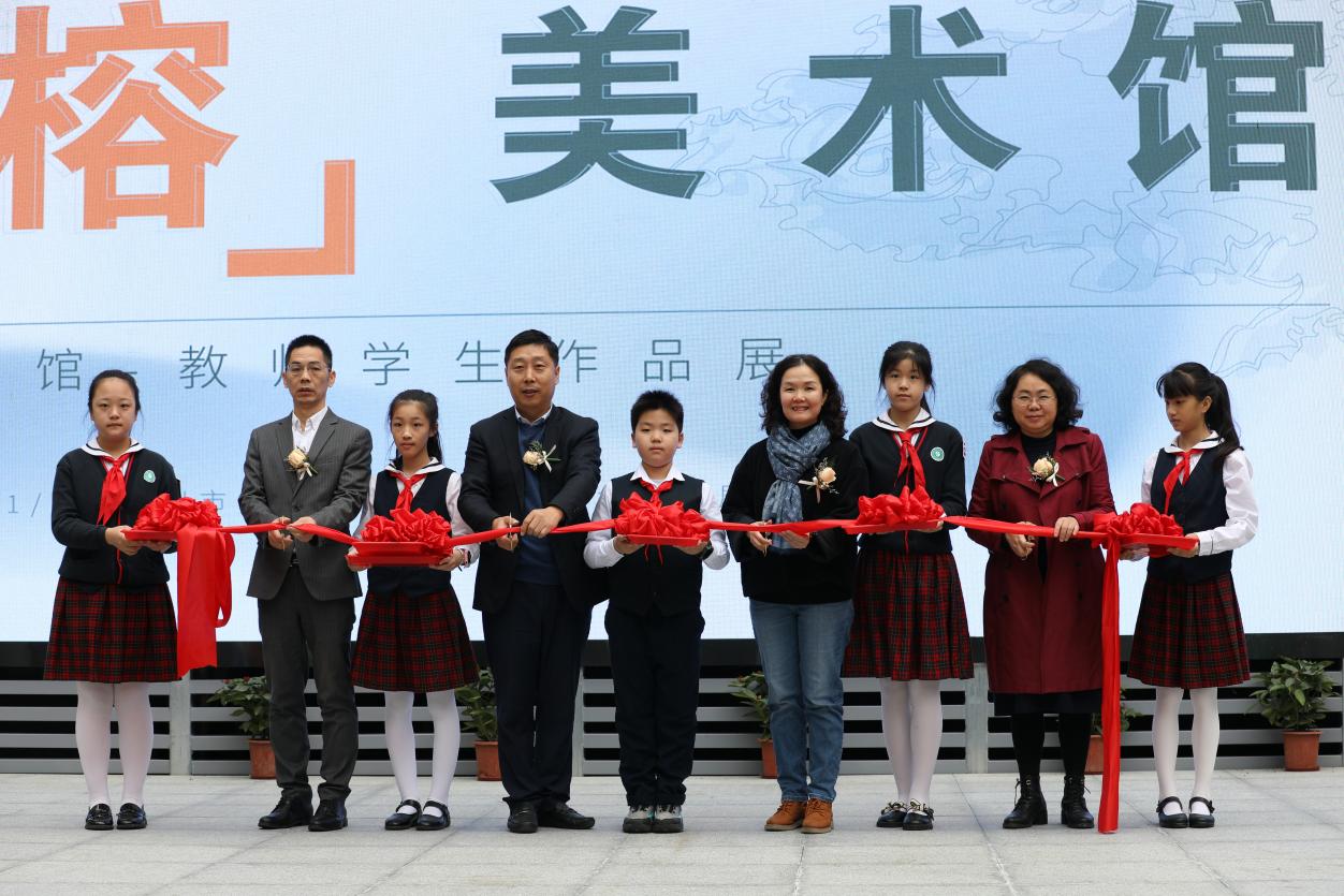 與開館和展覽同時推出的,還有“榕”美術(shù)館的云展館。云展館以新媒體形式,擴大了展覽范圍,使得學校的美術(shù)美育成果得以向外部展示。推出之際,學校舉行了云展館的剪彩儀式。解署昱校長致辭并宣布開館,福田區(qū)教科院藝術(shù)辦林影萍主任、解署昱校長、劉權(quán)祥副校長、姚紅霞副校長為云美術(shù)館剪彩,并向全校學生贈送了云展館資料。