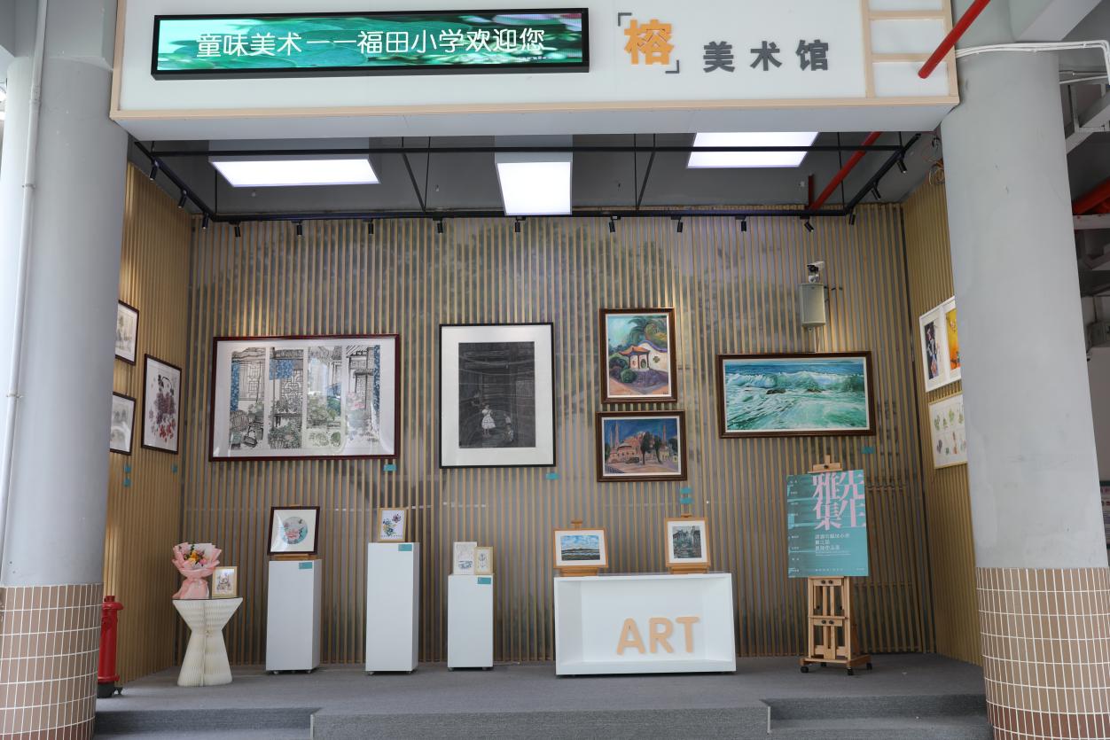 福田小學教師多才多藝,為了迎接新年在學校新建的榕美術(shù)館展出了各學科老師們的手工繪畫作品,這也是一個美的展示空間。