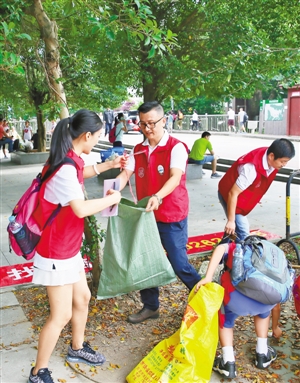 志愿者在梧桐山景區(qū)清理垃圾。