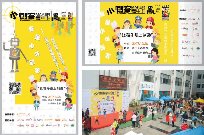 深圳大學(xué)城創(chuàng)意園主辦,活動以創(chuàng)意街市+創(chuàng)業(yè)集市的形式,展示、銷售孩子的創(chuàng)意產(chǎn)品,并結(jié)合專業(yè)創(chuàng)客實驗室、3D打印、增強/虛擬現(xiàn)實、機器人等科技、技術(shù),讓孩子們在輕松投入的氛圍中體驗最前沿的科技產(chǎn)品和創(chuàng)客項目?!皠?chuàng)新”、“實踐”、“分享”,活動旨在培養(yǎng)孩子們的動手創(chuàng)作能力、社會交往技能、團隊協(xié)作、實踐技巧、集體榮譽,拓展孩子們的創(chuàng)新創(chuàng)意思維,讓孩子愛上創(chuàng)造,逐步提升孩子的綜合能力,為將來更好地適應(yīng)社會的發(fā)展趨勢打好基礎(chǔ)。