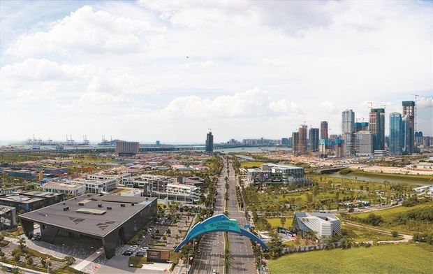 深圳將加快前海深港合作區(qū)和前海蛇口自貿(mào)片區(qū)開發(fā)開放,努力構(gòu)建更高水平的開放型經(jīng)濟新體制。圖為前海深港合作區(qū)俯瞰。(深圳報業(yè)集團資料圖)