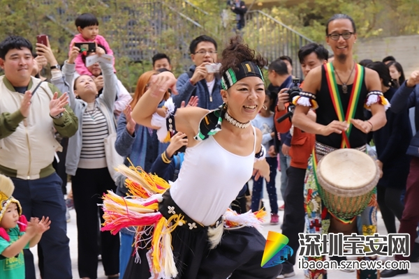 “冬添集市”分為六大板塊,包含:“添趣”“添織”“添耕”“添音”“添物”“添食”,其中最熱鬧的就要數(shù)主舞臺(tái)區(qū)的“添音”展區(qū),JAMMALA樂(lè)隊(duì)和非錄音樂(lè)俱樂(lè)部連續(xù)兩日,準(zhǔn)點(diǎn)帶來(lái)音樂(lè)表演。JAMMALA樂(lè)隊(duì)是由一群來(lái)自世界各地鼓友們成立的一支非洲傳統(tǒng)打擊樂(lè)隊(duì),10日下午3:30,熱情洋溢的鼓聲在泰華梧桐島響起,伴隨著歡快的舞蹈,不少參觀市民加入到游街表演的隊(duì)伍中來(lái),禁不住一起跳起來(lái),唱起來(lái),現(xiàn)場(chǎng)活動(dòng)氣氛熱烈。