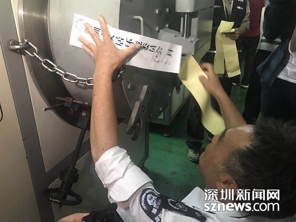 執(zhí)法人員對(duì)違法企業(yè)的設(shè)備進(jìn)行查封