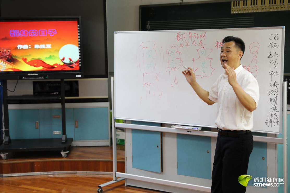 深圳新聞網(wǎng)訊 (記者 曹園芳)“1994年大學(xué)畢業(yè)進入湖南省衡陽藝術(shù)學(xué)校,從事專業(yè)舞蹈學(xué)科教學(xué),帶著一群追夢少年心隨舞動,這是我教育之夢的開始?!彼?,從事音樂教育工作24年以來,在教學(xué)中堅持“以美育人、以文化人”,以提高學(xué)生藝術(shù)素養(yǎng)與人文素養(yǎng)為己任,他就是小學(xué)高級教師、福田區(qū)皇崗小學(xué)教務(wù)主任戴智。