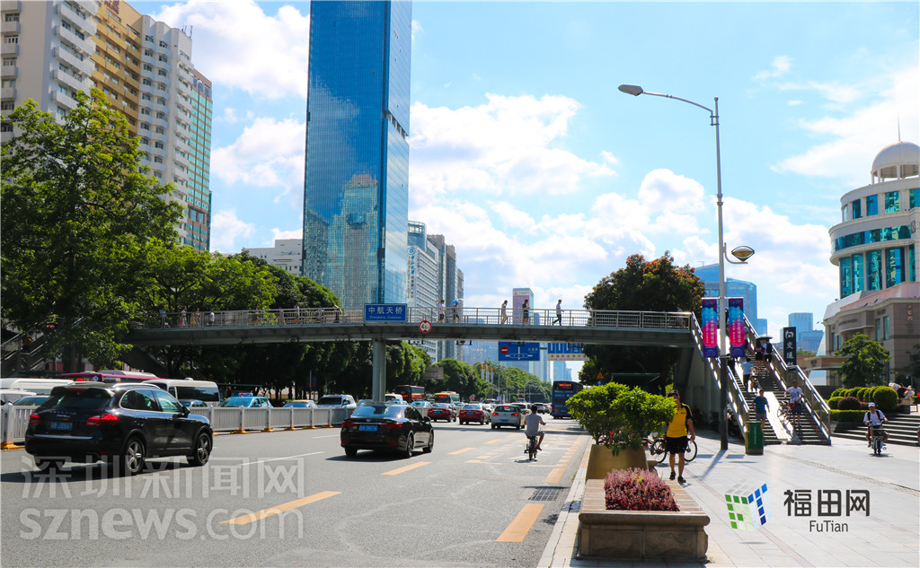 位于華強(qiáng)北片區(qū)西部、深南中路上的中航天橋就是華強(qiáng)北一處重要的交通樞紐。