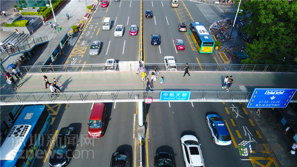 中航天橋位于深南大道上,是華強北過了中心公園后唯一一個比較標志性的構(gòu)筑物