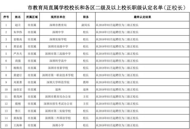 深圳校長職級認(rèn)定結(jié)果公示,快看看你孩子的校長是幾級?