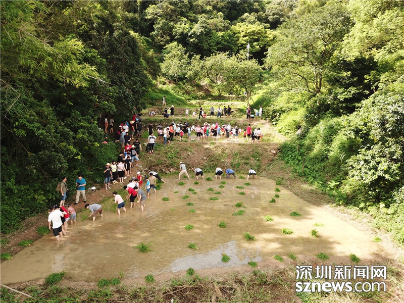 寸土寸金的南嶺村,一直保留著20畝水稻田。每年春種秋收時(shí)節(jié)的,當(dāng)?shù)睾⒆觽円驮缫严茨_上田的長(zhǎng)輩一起勞作,感受“汗滴禾下土”的滋味。2018年8月2日,放暑假的南嶺村小朋友又和大人們一起下田插秧。