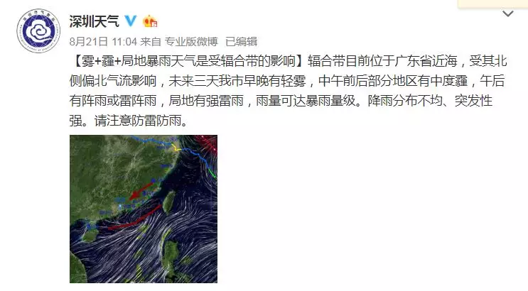 深圳氣象臺先后發(fā)布了