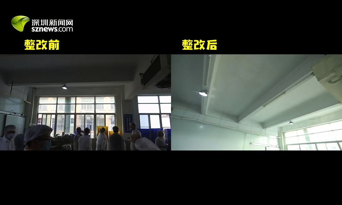 29日突查發(fā)現(xiàn),工具清洗間“地面積水多”“屋頂潮濕發(fā)霉”。今日深圳新聞網(wǎng)回訪發(fā)現(xiàn),屋頂已得到修繕,現(xiàn)不存在發(fā)霉現(xiàn)象,該公司也已安排專門員工負(fù)責(zé)清理該間。