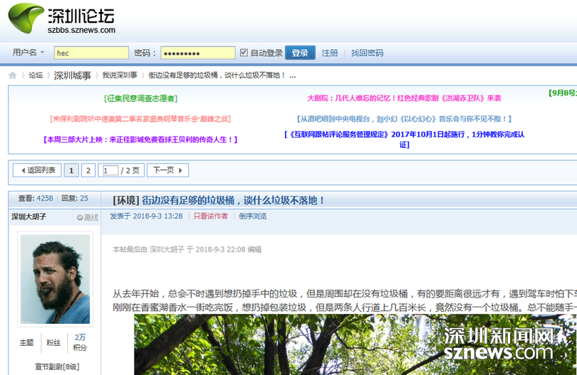 深圳新聞網(wǎng)9月6日訊(記者何暢)“街邊沒有足夠的垃圾桶,談什么垃圾不落地!”,網(wǎng)友“深圳大胡子”在深圳論壇發(fā)帖吐槽,自己在福田區(qū)香蜜湖香水一街附近想扔掉手中的垃圾,但是兩條人行道上幾百米長的路段竟然找不到一個垃圾桶!