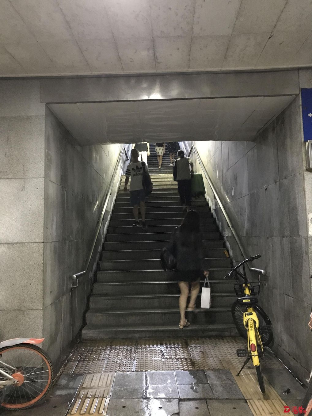 深南大道東門(mén)過(guò)街通道,雨天漏水,地板破損,臺(tái)階沒(méi)有坡道,行李箱與自行車(chē)得靠人扛