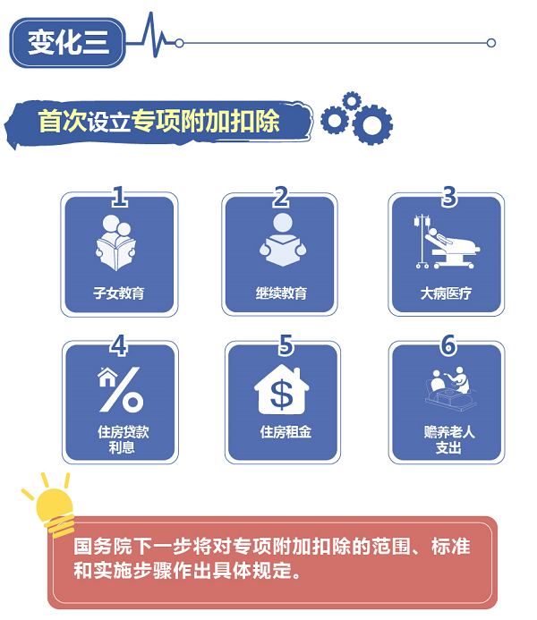 此次個稅改革再次提高基本減除費用標準和優(yōu)化稅率結構。從今年10月1日起,基本減除費用標準,也就是俗稱的起征點,將從原來每人每月3500元提高至5000元(每人每年6萬元)。