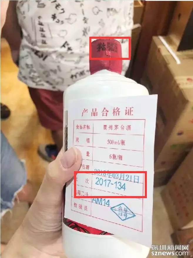執(zhí)法人員支招,從以下方法入手:一般每箱茅臺(tái)都有對(duì)應(yīng)的產(chǎn)品合格證,合格證上有相關(guān)批次數(shù)字,如果合格證上的批次數(shù)字與茅臺(tái)開(kāi)口處所寫的批次一樣的話,為真茅臺(tái)概率很高。如圖,合格證和茅臺(tái)瓶口的數(shù)字皆為2017-134,為真酒,市民可放心飲用。