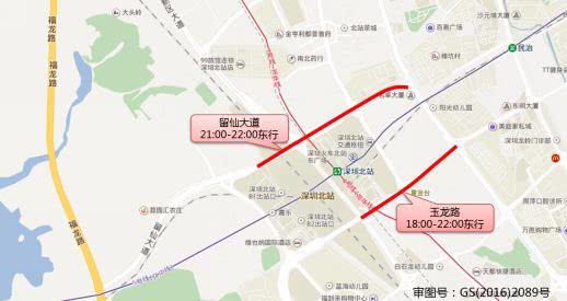 留仙大道(21:00-22:00東行),玉龍路(18:00-22:00東行)。