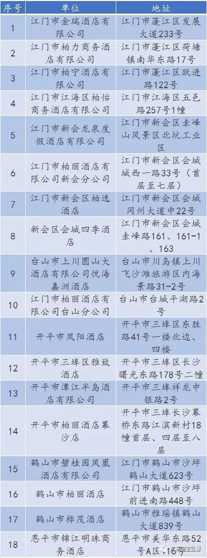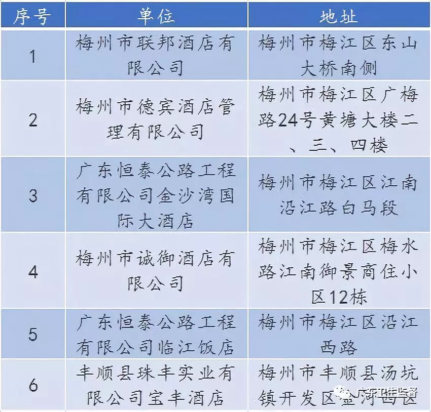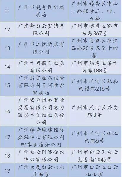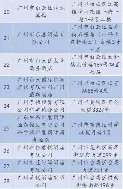 廣東省A級住宿單位名單