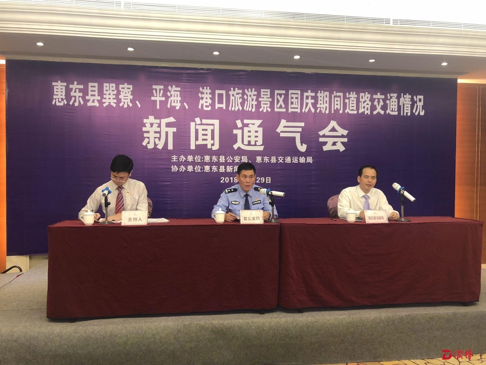 9月29日上午,惠東縣舉行巽寮、平海、港口旅游景區(qū)國(guó)慶期間道路交通情況新聞通氣會(huì),通報(bào)通往巽寮、平海、港口等濱海旅游景區(qū)的道路X213線、X210線道路路況,以及國(guó)慶黃金周期間景區(qū)的道路交通狀況預(yù)判情況及出行提示、交通管制等情況。