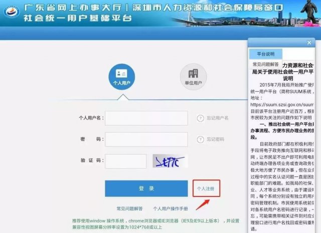 注冊成功后返回操作系統(tǒng)登錄,輸入用戶名和密碼進入個人網(wǎng)頁。注冊條件需要有12家銀行(金融社保卡合作銀行)的深圳開戶的銀行賬號。