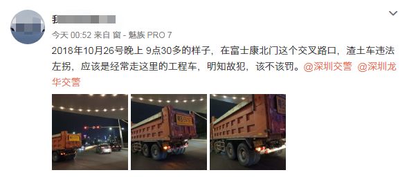 稱一輛泥頭車違反禁止標志標線通行