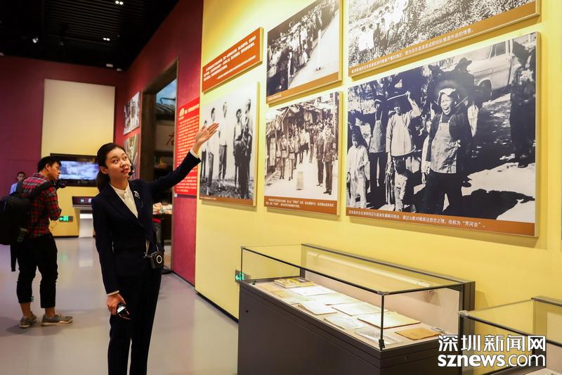 講解員正在對(duì)改革開放前廣東的情況進(jìn)行講解(深圳新聞網(wǎng)記者 潘潤(rùn)華、胡津瑋 實(shí)習(xí)生 張林羽 攝影報(bào)道)