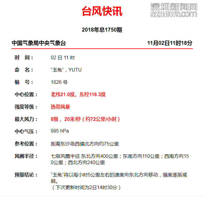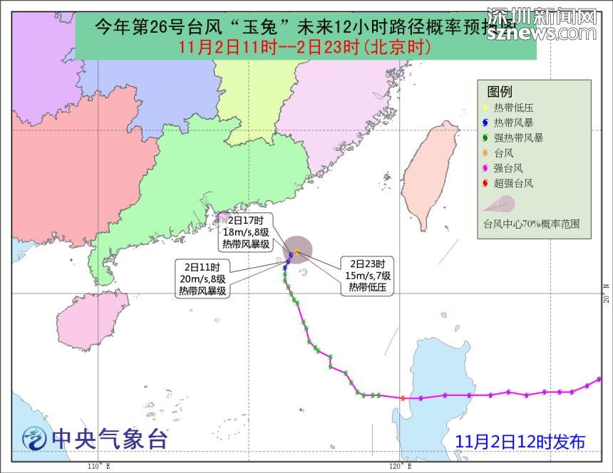 臺風“玉兔”對深圳市風雨影響已減弱,深圳市氣象臺于11月2日12時5分在全市取消臺風白色預警。臺風“玉兔”帶著成為風王呼風喚雨的心出發(fā),最后岸都沒上,就乖乖走了。只能說,沒來過,但吹過。