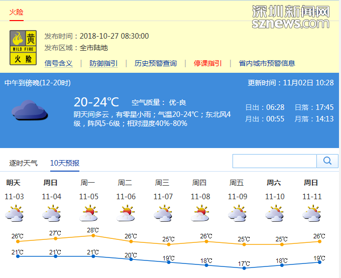 市氣象局發(fā)布未來十天天氣預報(數(shù)據(jù)更新于11月02日10時28分)