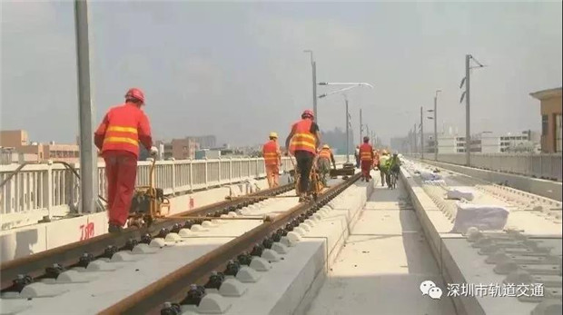 從施工現(xiàn)場(chǎng)可以看到,鋪軌機(jī)把長(zhǎng)軌放入無(wú)碴道床就位,當(dāng)鋼軌最后精準(zhǔn)就位后,要求正負(fù)誤差不超過(guò)1毫米。目前鋪軌進(jìn)度至少每天7公里,11日上午從金沙站開(kāi)始不停歇作業(yè),到下午兩點(diǎn)鋪軌作業(yè)已臨近深圳。項(xiàng)目建設(shè)者表示,大約本月20號(hào)鋪設(shè)到深圳機(jī)場(chǎng)北站。