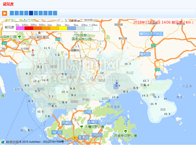 市氣象局發(fā)布能見度實況(數(shù)據(jù)更新于11月13日14:06)