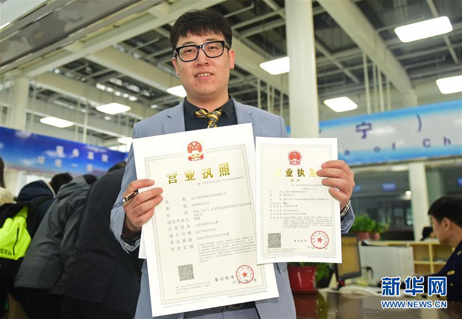 在沈陽(yáng)片區(qū)政務(wù)服務(wù)中心,一位企業(yè)代表注冊(cè)當(dāng)天拿到了營(yíng)業(yè)執(zhí)照(2017年4月10日攝)。新華社記者 楊青攝