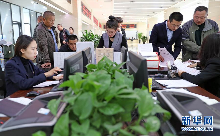企業(yè)代表前來沈陽(yáng)片區(qū)政務(wù)服務(wù)中心咨詢注冊(cè)(2017年5月9日攝)。新華社記者 楊青攝