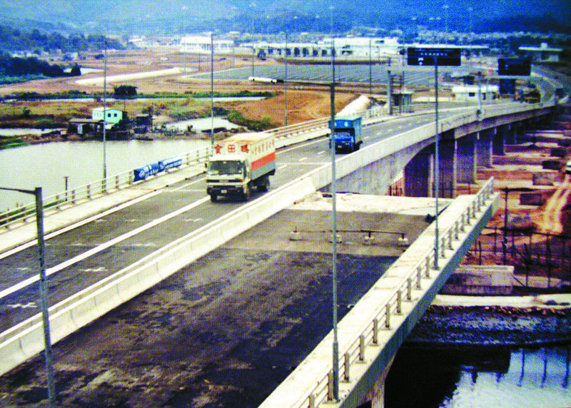1989年12月26日,皇崗口岸開通時(shí)的第一輛入境貨柜車,當(dāng)時(shí)落馬洲大橋只建成一半。 黃國春 攝