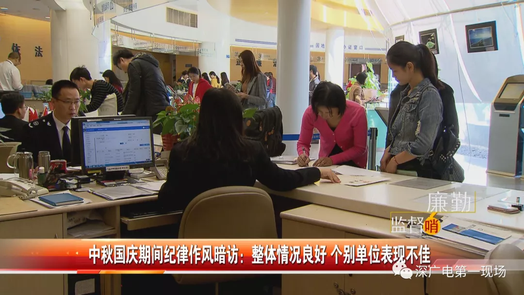 中秋、國慶雙節(jié)期間,市紀委監(jiān)委和深圳廣電集團聯(lián)合暗訪組共出動232人次,分別前往大鵬新區(qū)稅務(wù)局、大鵬新區(qū)衛(wèi)生監(jiān)督所、大鵬新區(qū)公共事業(yè)局、坪山區(qū)教育局,坪山區(qū)建筑工務(wù)局、光明區(qū)社保分局、光明區(qū)衛(wèi)生監(jiān)督所等47個市、區(qū)單位及下屬部門獨立辦公場所,進行暗訪調(diào)查。多數(shù)單位人員齊整,工作秩序井然,前來咨詢辦事的市民能夠得到及時、有效的接待服務(wù),沒有發(fā)現(xiàn)違規(guī)收受“紅包”禮金等“四風”問題。不過,聯(lián)合暗訪組還是發(fā)現(xiàn)了個別單位存在工作紀律渙散、提前早退脫崗等問題,作風存在軟、松、散情況。