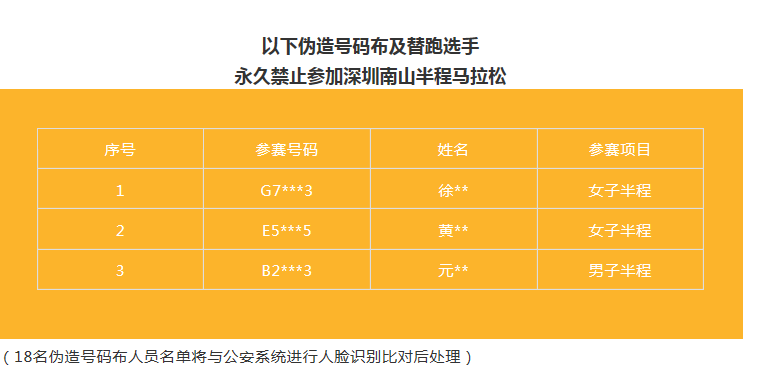 兩年內(nèi)禁止參加深圳南山半程馬拉松