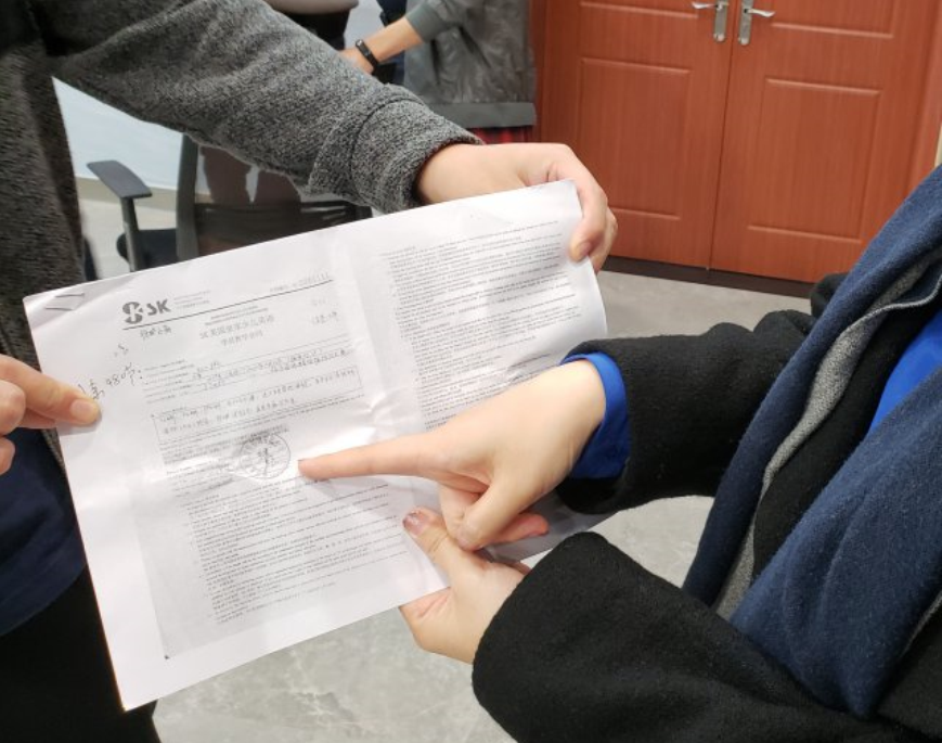 ▲家長(zhǎng)向記者展示合同上蓋章公司為"深圳市優(yōu)啟教育咨詢有限公司"。