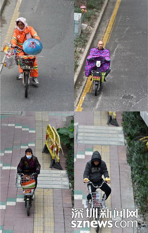 氣溫驟降,騎行更覺寒冷,往來騎車的市民使用各種保暖措施御寒。