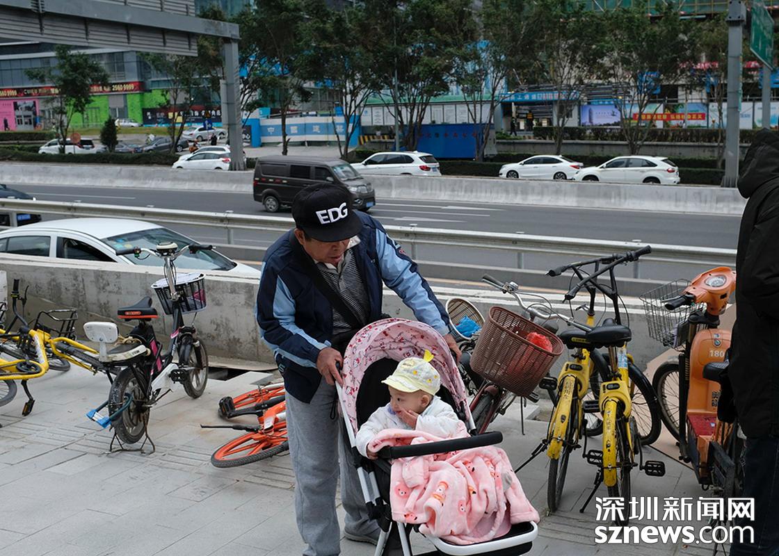 2018年12月12日,羅湖翠竹天橋,老人穿著羽絨服出行。