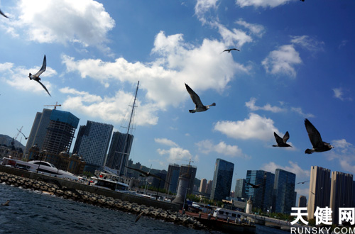 在這里,游客可以在碧海藍天下與成群的海鳥近距離互動,海風拂面,盡賞東港商務(wù)區(qū)岸邊美景,盡享浪漫風情。據(jù)了解,大連東港商務(wù)區(qū)國際游艇港目前區(qū)域內(nèi)地標建筑有國際會議中心、音樂噴泉廣場、國際游艇港,威尼斯東方水城等;配套有5星級酒店希爾頓酒店、康萊德酒店及其他各級酒店10多座。并在海韻大道設(shè)置了木棧道、塑膠跑道、自行車道和林蔭馬車大道,現(xiàn)已成為大連市民散步、晨練和外地游客休閑觀光的首選。