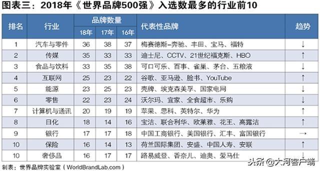 今年《世界品牌500強(qiáng)》共覆蓋了57個(gè)行業(yè)。其中,汽車(chē)與零件行業(yè)共有36個(gè)品牌入榜,排名繼續(xù)保持第一;傳媒行業(yè)今年上榜了35個(gè)品牌,位居行業(yè)第二;食品與飲料行業(yè)繼續(xù)下滑,以33個(gè)品牌退居第三;互聯(lián)網(wǎng)行業(yè)繼續(xù)保持上漲的勢(shì)頭,以25個(gè)品牌超過(guò)能源行業(yè)(23個(gè))排名第四。零售(22個(gè))以及計(jì)算機(jī)與通訊(20個(gè))行業(yè)均有小幅上漲。在過(guò)去的一年中,全球互聯(lián)網(wǎng)市場(chǎng)繼續(xù)保持高速增幅,2017年底全球互聯(lián)網(wǎng)用戶(hù)接近38億。但是互聯(lián)網(wǎng)行業(yè)的發(fā)展并非一帆風(fēng)順,今年三月,美國(guó)臉書(shū)公司陷入數(shù)據(jù)泄漏丑聞,引發(fā)了全互聯(lián)網(wǎng)行業(yè)公司的信任危機(jī),消費(fèi)者開(kāi)始注意到保護(hù)數(shù)據(jù)隱私的重要性。