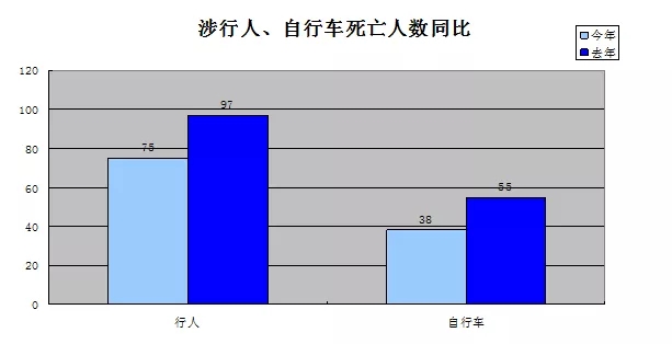 今年以來,全市共發(fā)生涉行人事故死亡75人,同比減少22人,下降22.68%,占事故死亡總?cè)藬?shù)的27.08%。全市共發(fā)生涉自行車事故死亡38人,同比減少17人、下降30.91%,占事故死亡總?cè)藬?shù)的13.72%。我市慢行交通方式的道路安全水平進一步提升。
