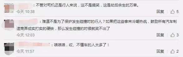 也有網(wǎng)友表示:"不管對司機(jī)還是行人來說,這不是搞笑,這是劫后余生的萬幸""防撞效果很好啊,本身就是要緩沖的""塑料懟鋼圈不就這樣?""難道不是為了保護(hù)發(fā)生碰撞時的行人?"。