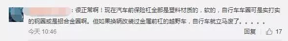 還有有不少網(wǎng)友指出,"很正常??!現(xiàn)在汽車前保險杠全部是塑料材質(zhì)的,軟的,自行車車圈可是實(shí)打?qū)嵉匿撊蚴卿X合金圈啊。但如果換輛改裝過金屬前杠的越野車,自行車就立馬廢了""如果把這些拿來冷嘲熱諷,鼓勵所有汽車制造商弄成實(shí)打?qū)嵉挠茶F,那么發(fā)生碰撞的時候就笑不出了""對一個局部點(diǎn)進(jìn)行沖擊。力度是非常大的,換其他大部分車都一樣"。