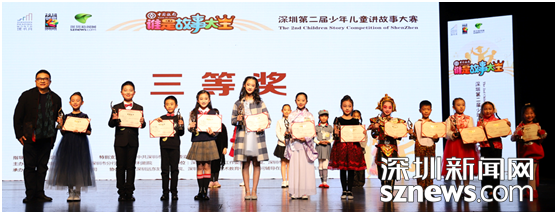 活動(dòng)期間,大賽主辦方還為參加此次活動(dòng)的學(xué)校、老師和小選手們頒發(fā)了最佳組織獎(jiǎng)、優(yōu)秀指導(dǎo)老師、優(yōu)秀獎(jiǎng)等獎(jiǎng)項(xiàng),從校園賽區(qū)、寶安分賽區(qū)、羅湖分賽區(qū)、中行專場(chǎng)、深圳新聞網(wǎng)線上海選晉級(jí)到深圳市復(fù)賽的每一位選手都獲得了參賽證明。一等獎(jiǎng)獲得者彭妙琪在采訪中表示,“很榮幸獲得‘故事大王’稱號(hào),這個(gè)比賽不僅讓自己聽到了更多的故事,還能增長(zhǎng)見識(shí),讓我們知道自己的不足,相信明年會(huì)有更多的選手加入這個(gè)舞臺(tái)?!?/p>